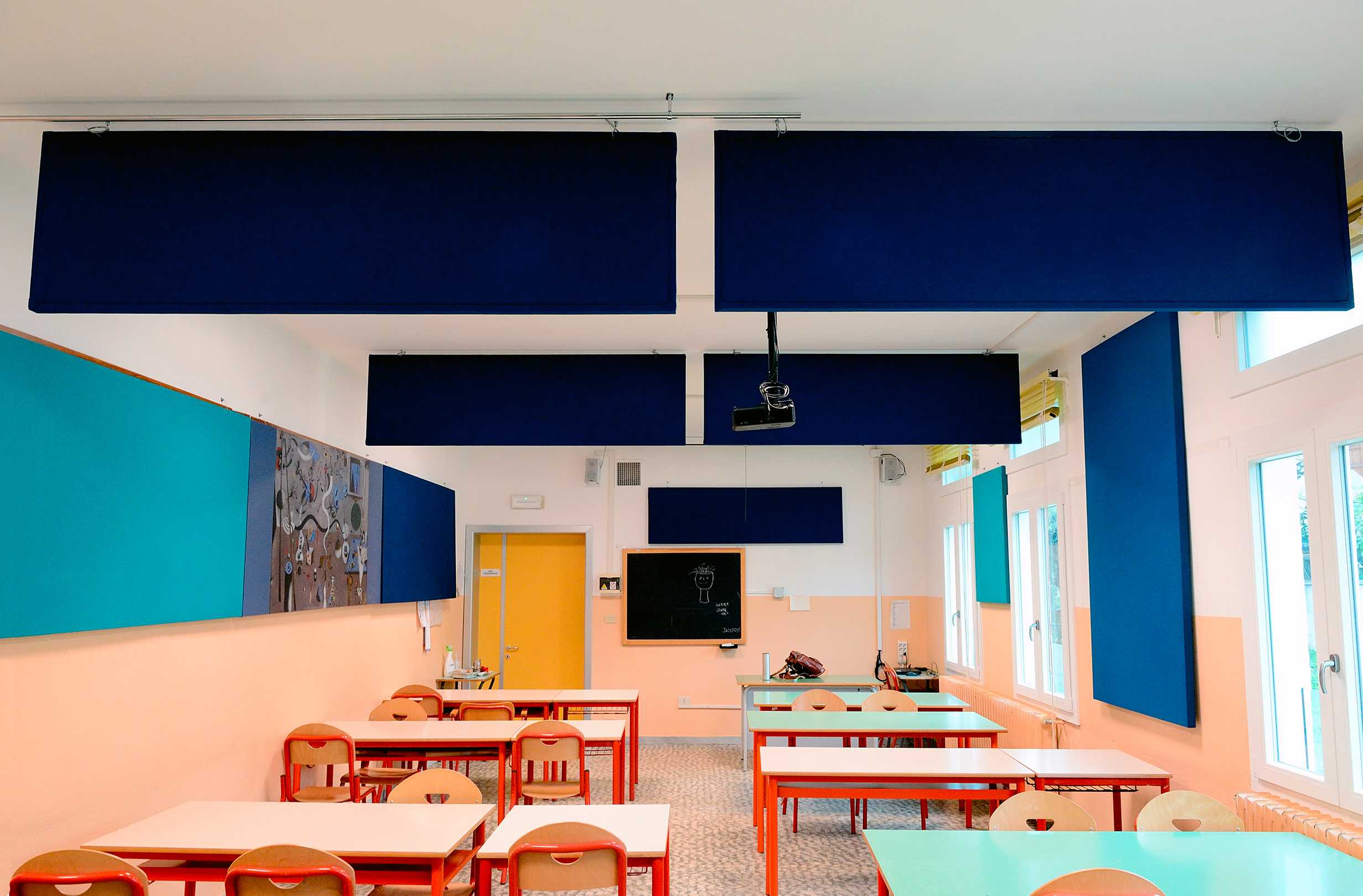 Realizzazione e installazione di pannelli fonoassorbenti presso una scuola secondaria di primo grado.